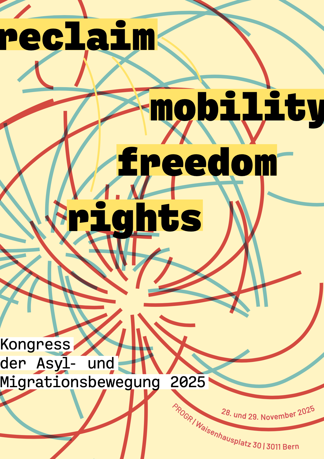 Unter diesem Motto findet am 28. und 29. November 2025 im Kulturzentrum PROGR in Bern ein zweitägiger Kongress der Asyl- und Migrationsbewegung statt.